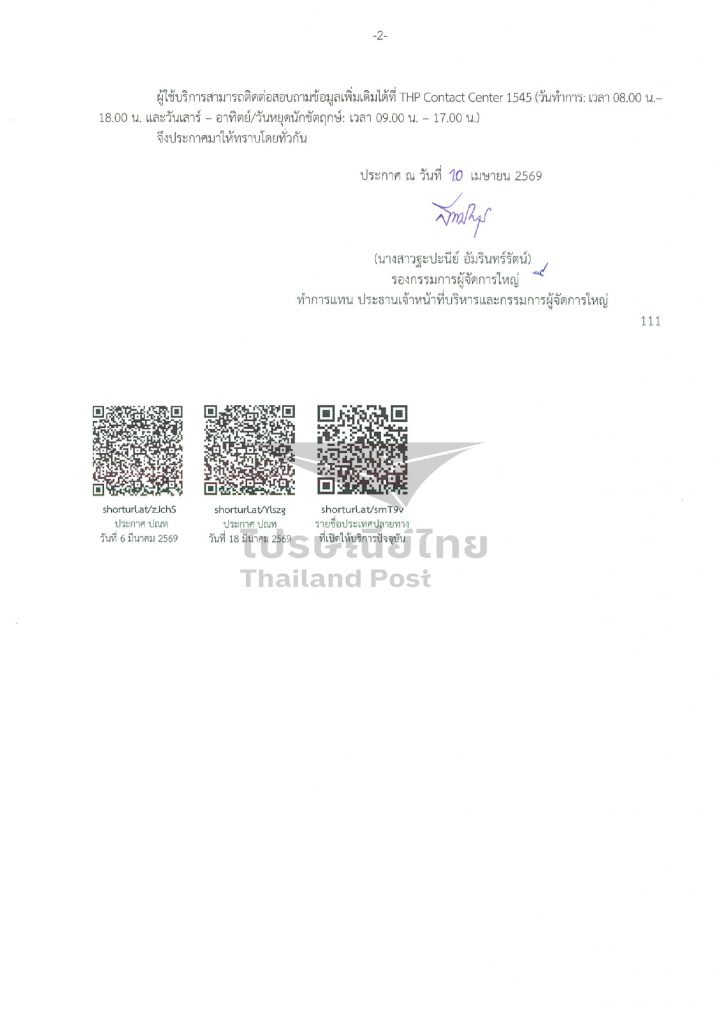 ไปรษณีย์ไทยขอแจ้งให้ผู้ใช้บริการทราบว่า