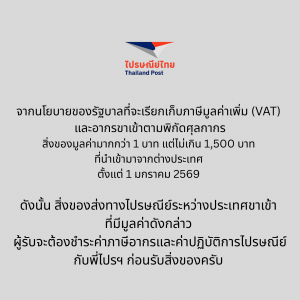 การเปลี่ยนแปลงนโยบายของกรมศุลกากรสำหรับสิ่งของนำเข้าประเทศไทยที่มีมูลค่ามากกว่า 1 บาท แต่ไม่เกิน 1,500 บาท ธันวาคม 19, 2568 อ่านเพิ่มเติม »