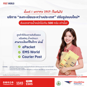ส่งของไปสหรัฐอเมริกาด้วย EMS World และพัสดุไปรษณีย์ระหว่างประเทศทางอากาศได้แล้ววันนี้ กุมภาพันธ์ 13, 2569 อ่านเพิ่มเติม »